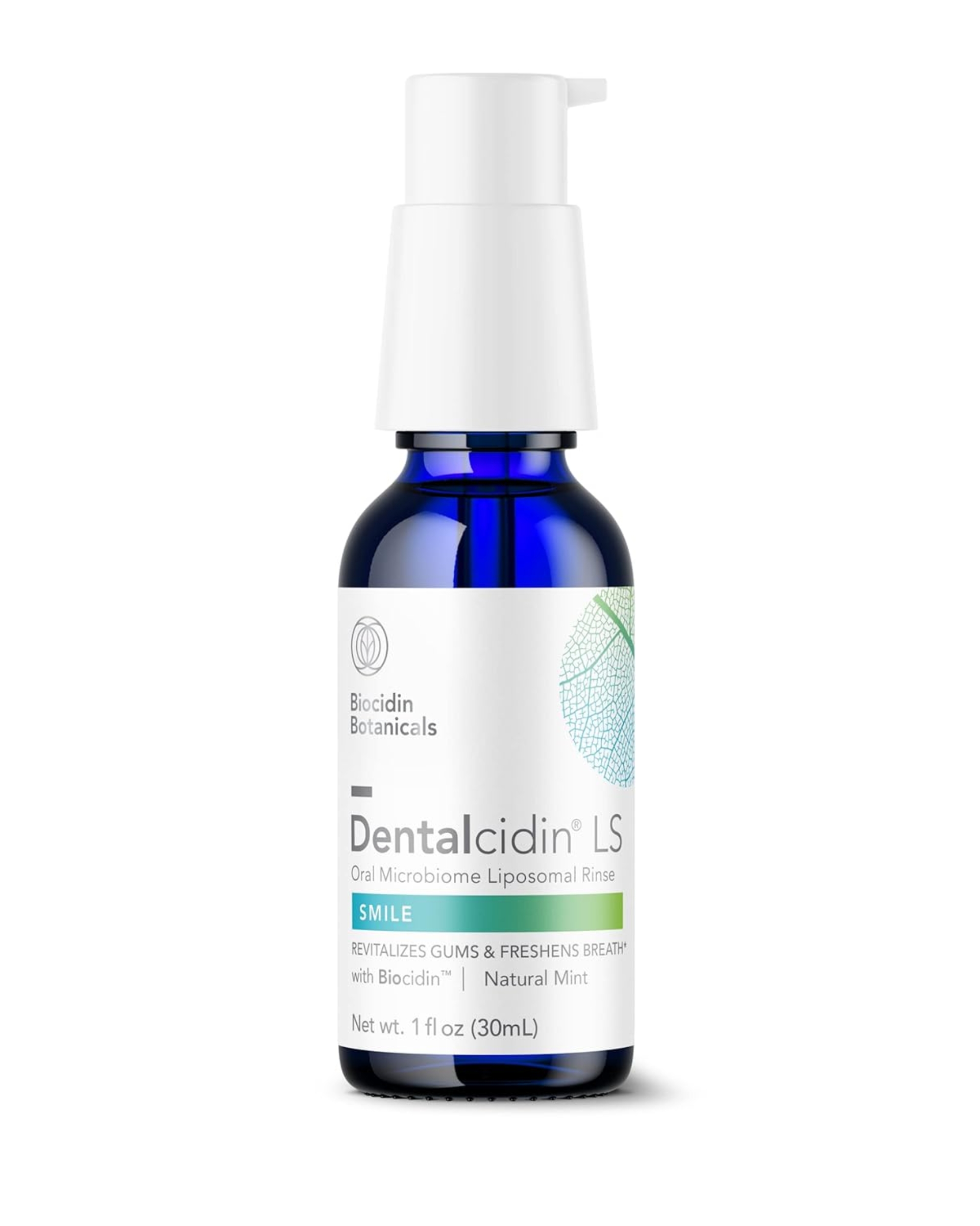 The active ingredient in Dentalcidin™LS oral rinse is Biocidin®, a proprietary blend of 17 botanical extracts and essential oils. In pilot research by Binghamton University, Biocidin® was shown to significantly reduce the viability of germs associated with biofilm (plaque) production. Dentalcidin™LS oral rinse contains a liposomal solution for deeper activity in the periodontal area, and is the perfect complement to Dentalcidin™ toothpaste.*