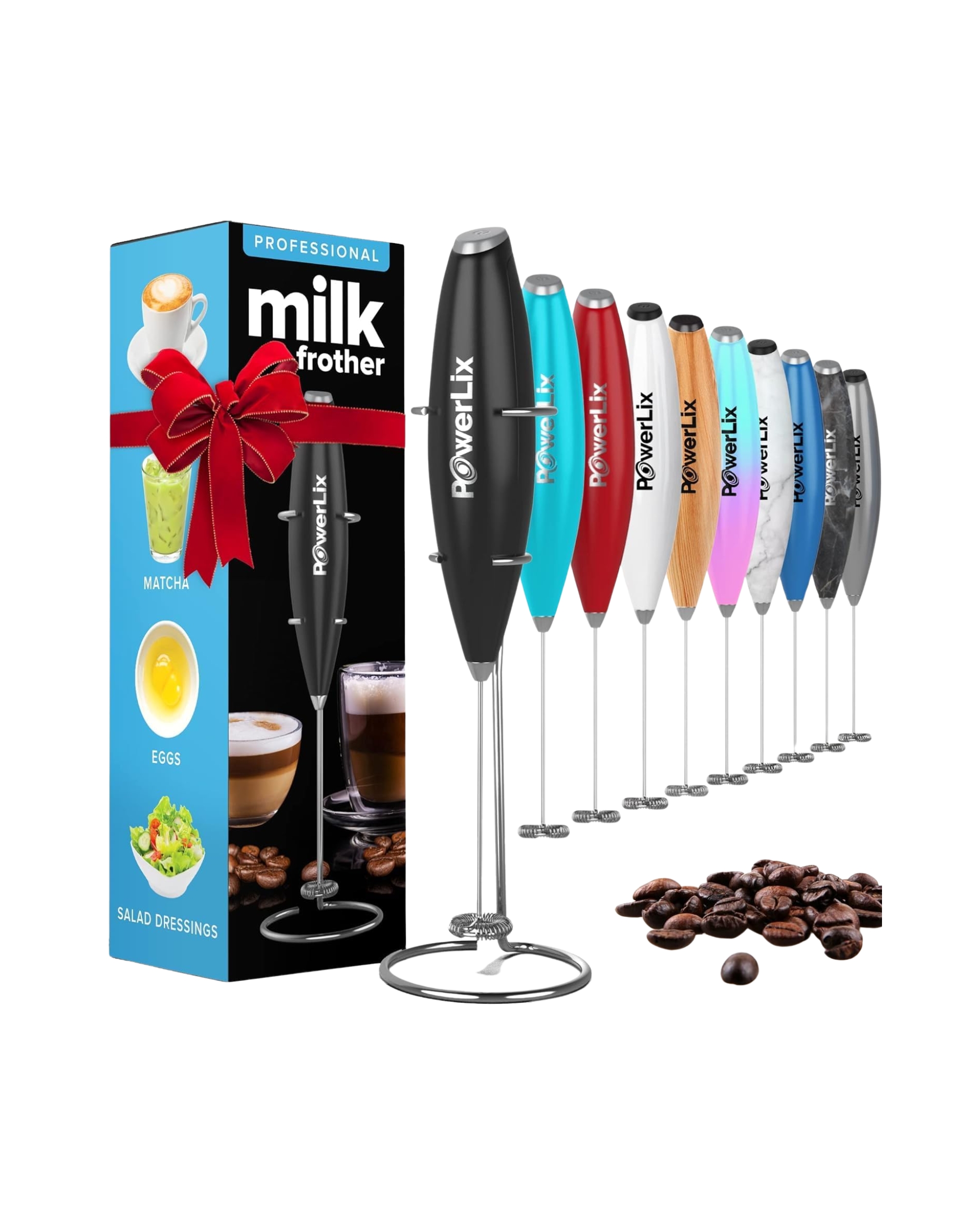 Powerlix brings you its portable handheld mixer/frother. It comes with a stand for easy storage and can be kept on the countertop. The mixer is battery powered so you don’t have to worry about cords and finding sockets. Heat up the milk, immerse the mixer into the cup and turn it on. The milk foamer will start creating creamy froth on the milk instantly. Within 15 – 20 seconds, you have a cup filled with creamy froth and ready to go into your coffee latte. Use to vigorously stir any liquid!
